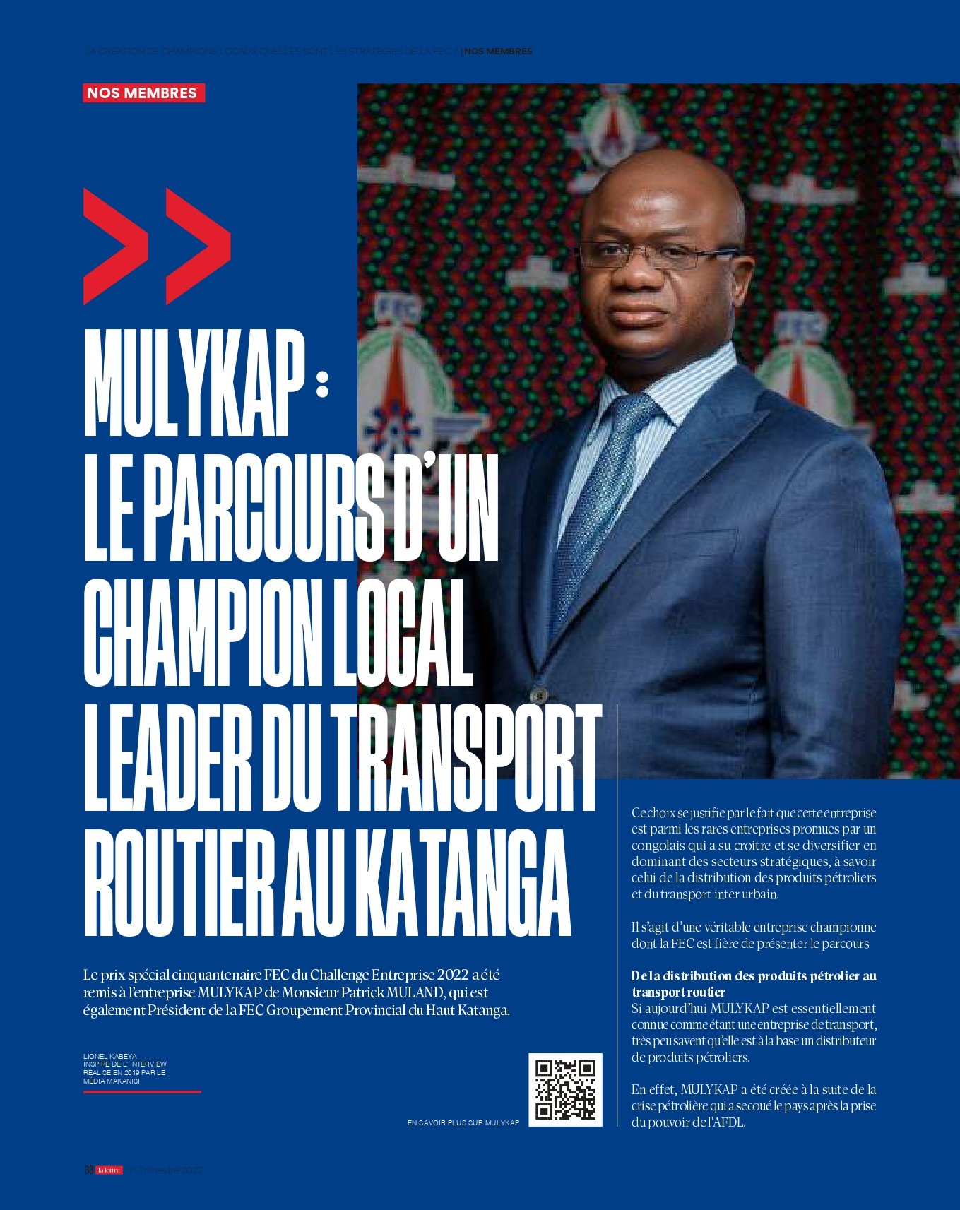 Mulykap : Votre partenaire de confiance pour le transport et l'approvisionnement en produits pétroliers en RDC. Mulykap est reconnue comme l'entreprise de transport la plus fiable du pays, alliant sécurité, confort et efficacité. Avec une flotte moderne de plus de 140 bus récents, parfaitement entretenus, nous garantissons à nos voyageurs une expérience agréable, dotée d'équipements tels que la climatisation et des télévisions à bord pour un confort optimal. Nos trajets réguliers, effectués plusieurs fois par jour, relient Kolwezi à Kasumbalesa, en passant par Lubumbashi, Likasi et Fungurume, avec une ponctualité exceptionnelle. Mulykap veille rigoureusement à la sécurité et au bien-être de ses passagers à chaque étape du voyage. Pour plus de commodité, nos billets sont disponibles à la vente en ligne ou directement en agence, vous offrant flexibilité et simplicité. Mulykap, un acteur clé du secteur privé, s'engage à contribuer au développement d'un Congo prospère, en offrant des services de qualité supérieure.